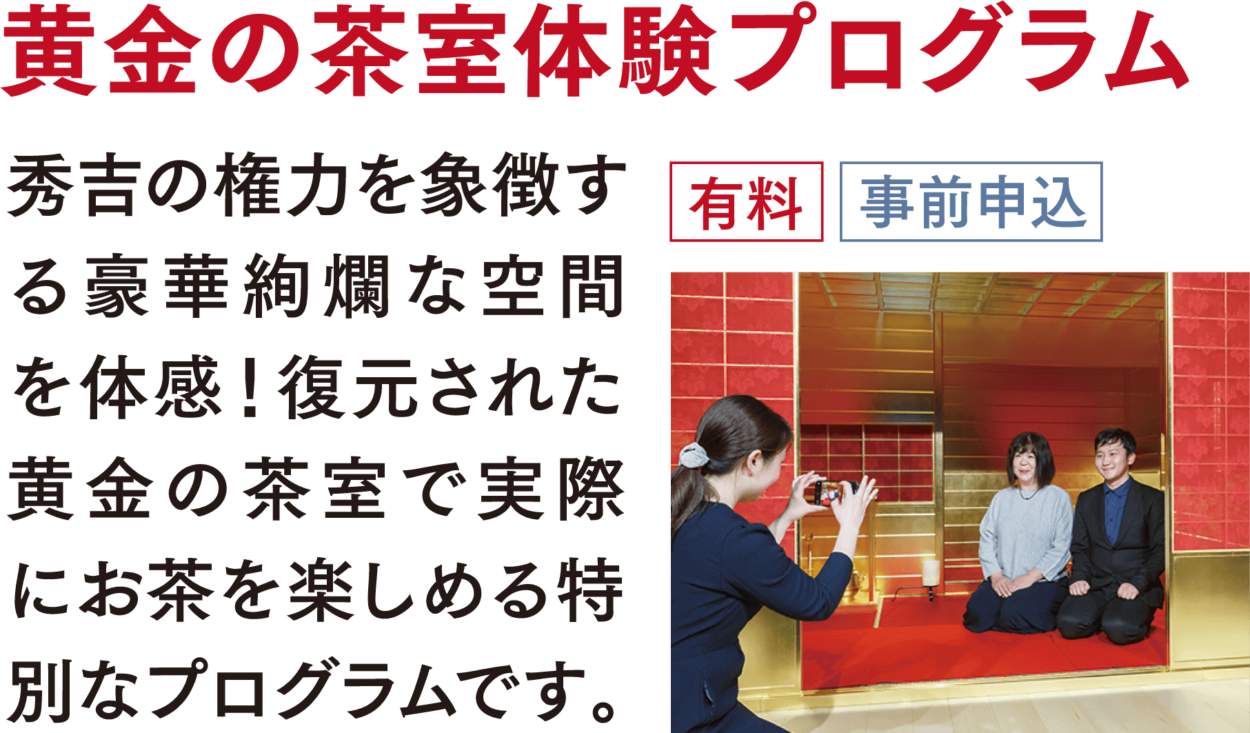 | プログラム | 黄金の茶室体験プログラム |